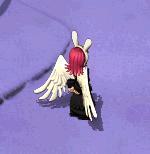 黒天使服にウサミミ・髪色ピンク、というふざけた格好になっても、消える帽子を外して走り回る〜。